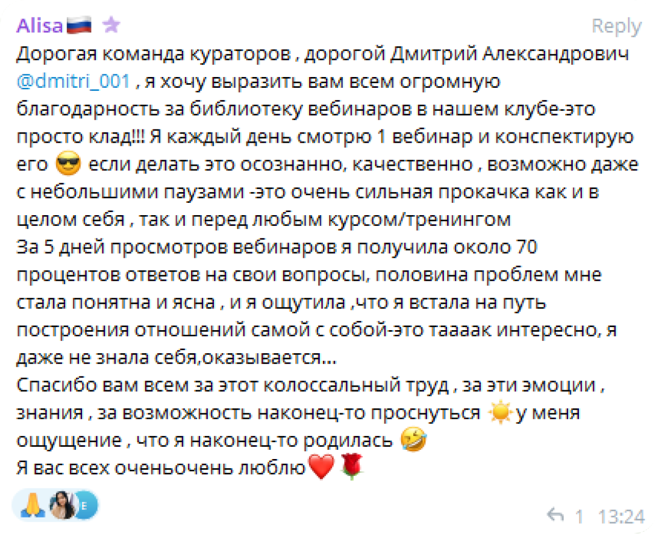 Вместе с кураторами Дмитрий будет приходить к вам на помощь и отвечать на ваши вопросы. Вы никогда не почувствуете себя забытыми в Kalinskii Club.